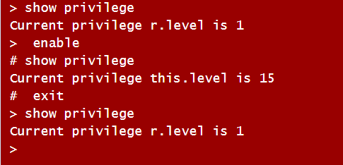 - Nivel 0: Es el nivel más bajo de acceso, permitiendo sólamente 5 comandos, logout, enable, disable, help y exit.