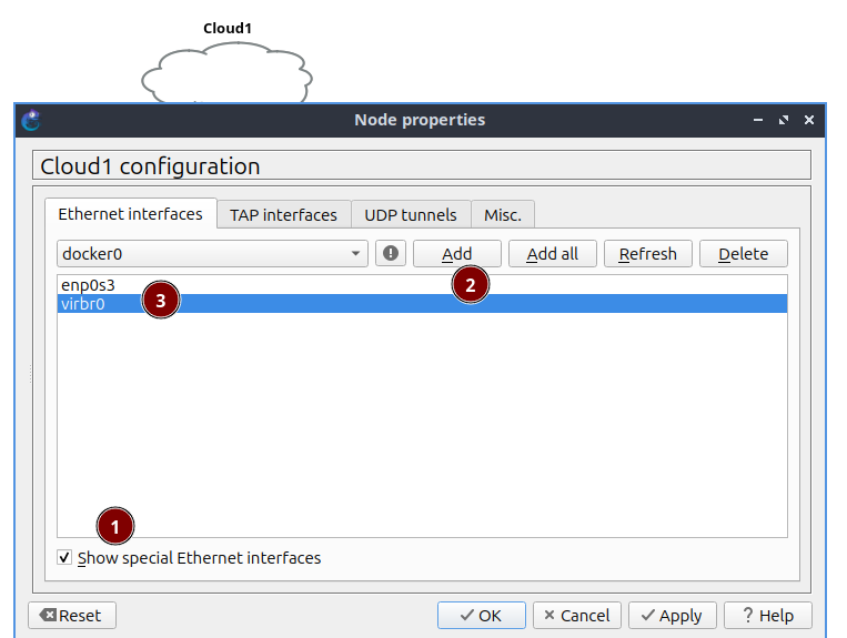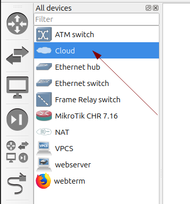 En este Cloud vamos a agregar la interface Virtual de la nube.